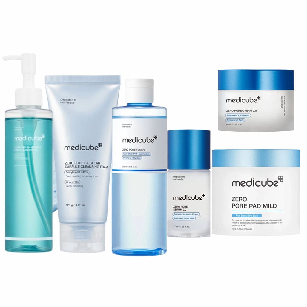 Achieve flawless, poreless skin with the Medicube Zero Pore Complete Set Korean skin care product, a comprehensive regimen designed to address enlarged pores, excess oil, and uneven texture from multiple angles. This carefully curated collection combines dual-textured pads, pore-refining treatments, and sebum-control formulas to deliver professional results at home. Each product in this set works synergistically to exfoliate, detoxify, tighten, and hydrate your skin for a smooth, balanced complexion.